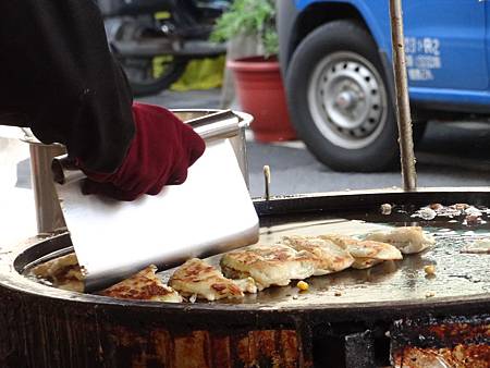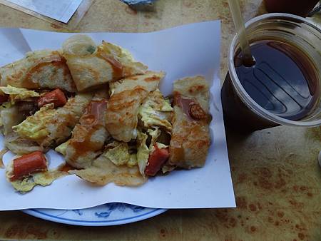 蛋餅的外頭帶著微微的焦脆,咀嚼的過程中,感受到老闆拿捏粉漿的比例恰到好處,軟Q軟Q的感覺,